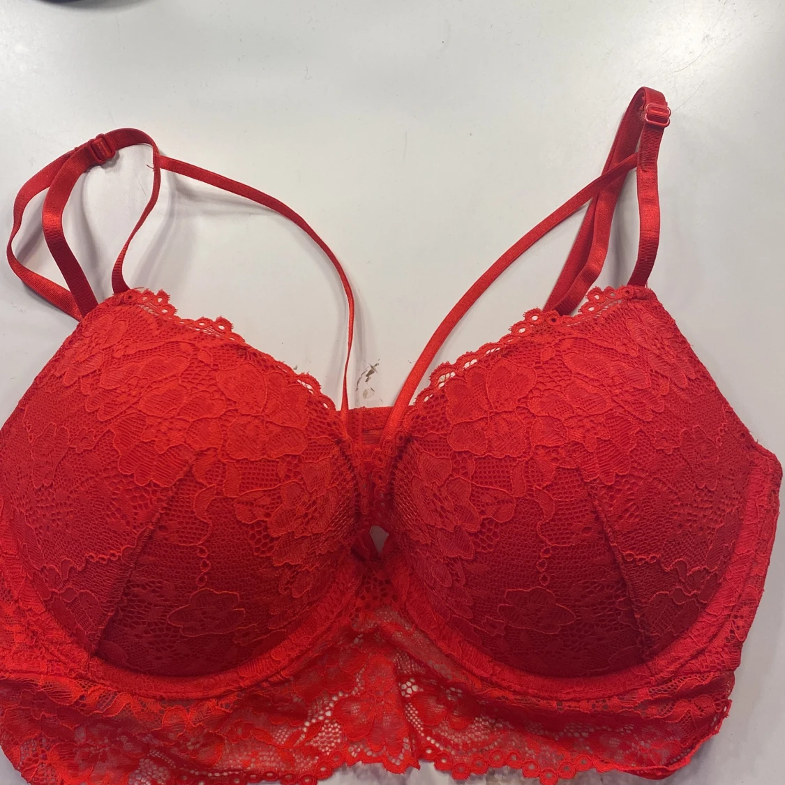 Jätte fin röd bh som bara är testad, push up och band på brösten