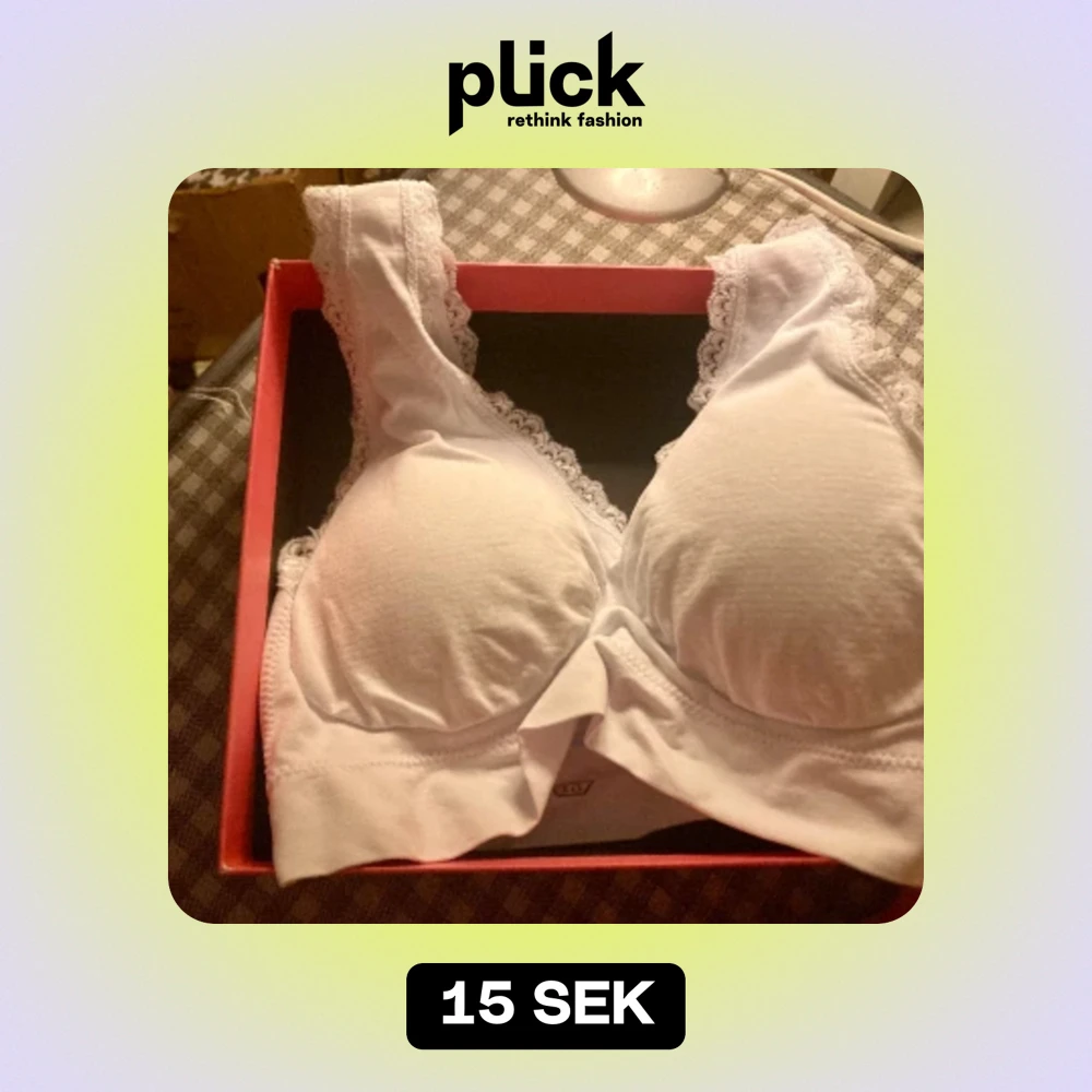 Ny oanvänd vadderad BH-top, vit, uppskattar till XS/S, kupa B/C. Har en liten fläck på linningen (zoomat in) fanns där från början, vet ej om det går bort, inget störande.