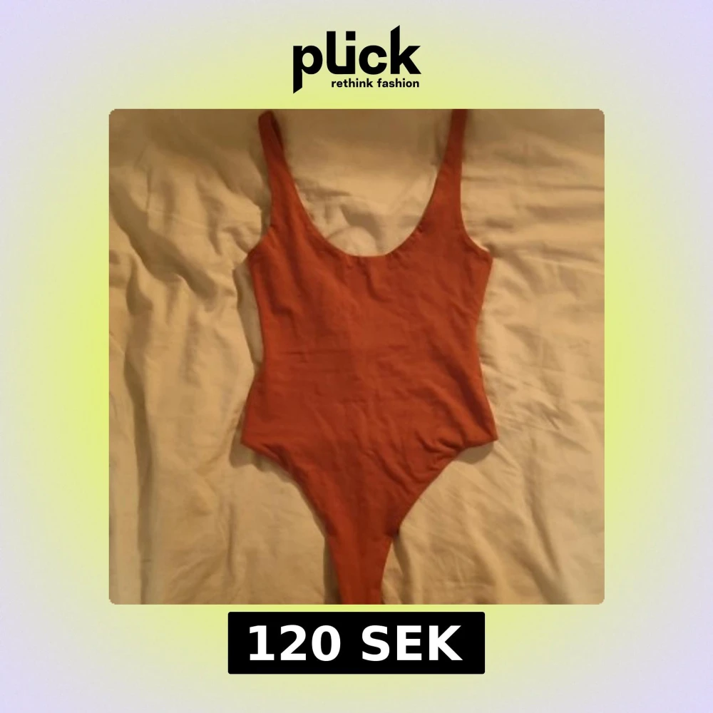 Snygg rostbrun bikini från Bik Bok i storlek XS. Modellen har djup urringning och högt skurna ben, vilket ger en trendig siluett. Tillverkad i mjuk bomull med praktiska knappar i grenen för enkel användning.