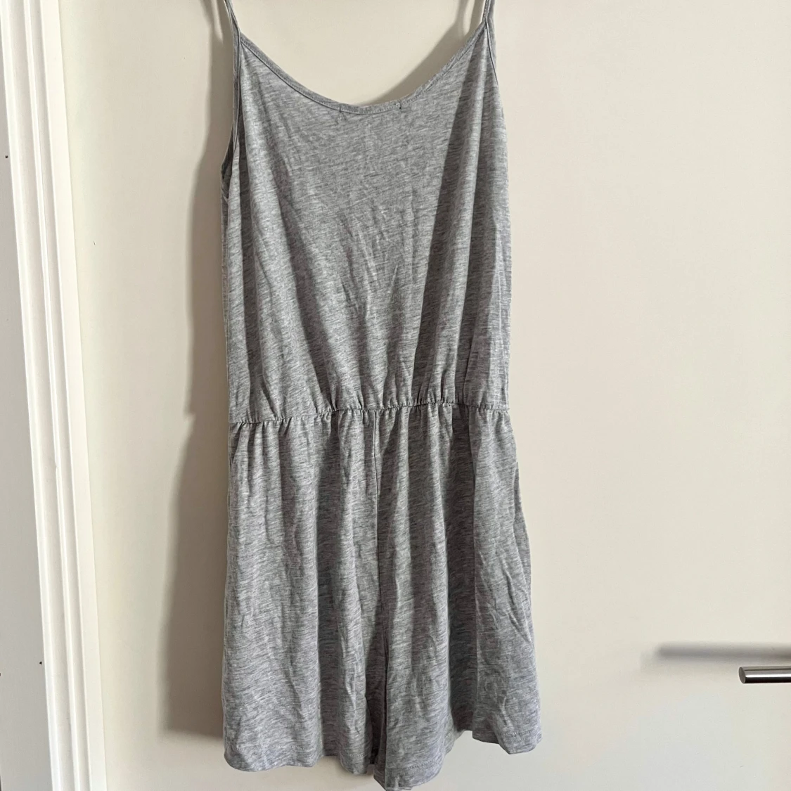Ljusgrå playsuit med tunna axelband och fickor från Bikbok! Väldigt mjukt material och flowy passform! Har använts fåtal gånger, inga märken eller fläckar. Alla använda plagg tvättas noga innan leverans! Det är bara att skriva om du har några frågor! <3