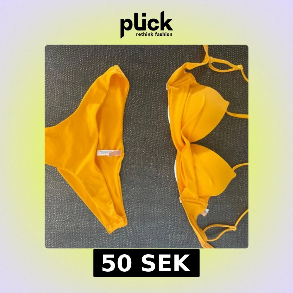 Snygg gul bikini från Nelly med vadderad trekants-bh och justerbara axelband. Storlek SMALL. Underdelen har klassisk normal midja och enkel, stilren look. Perfekt för stranden eller poolen, färgen poppar verkligen i solen!