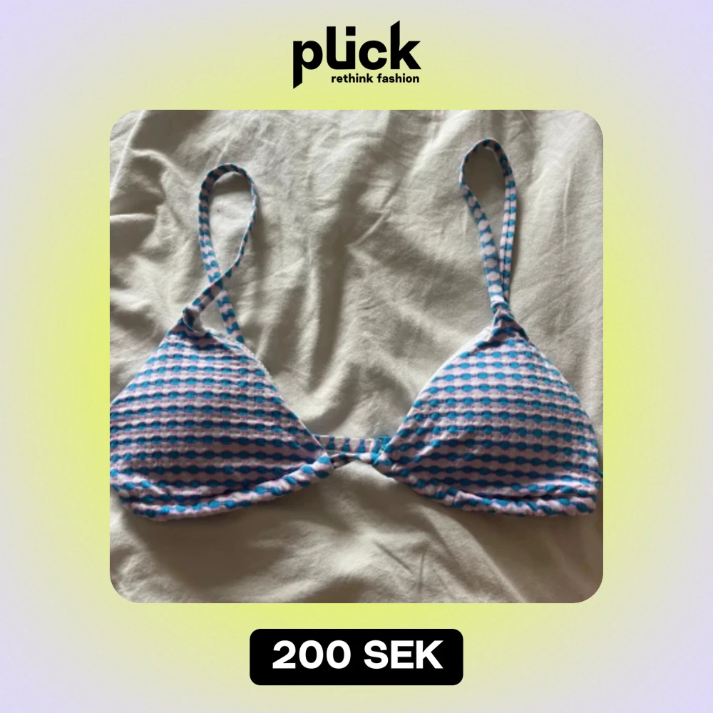Väldigt fin bikini ifrån Pull and Bear har använt Max 5 gånger och är i väldigt bra skick, då det inte står storlek så blir det svårt att ange det men skulle gissa på xxs.