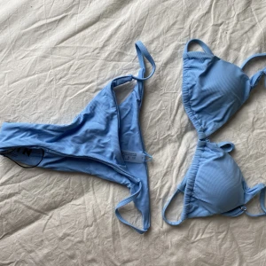 Blå bikini från SHEIN. Storlek S, aldrig använt och trosskyddet i underdelen sitter kvar.
