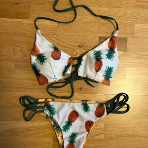 En bikini med annanasmönster som går att vända ut och in på. Använd 1 gång men är tyvärr för liten.