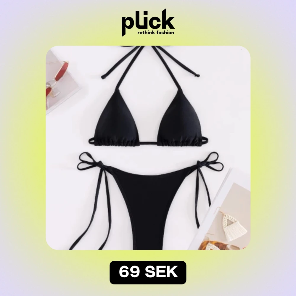 En fin triangel svart bikini, är missnöjd med passformen på mig (anledning till att jag säljer den). Det är nytvättad och finns i påsen varan kom i! ☺️ Skriv privat för önskade bilder på vara! 😊 Frakt tillkommer 📦