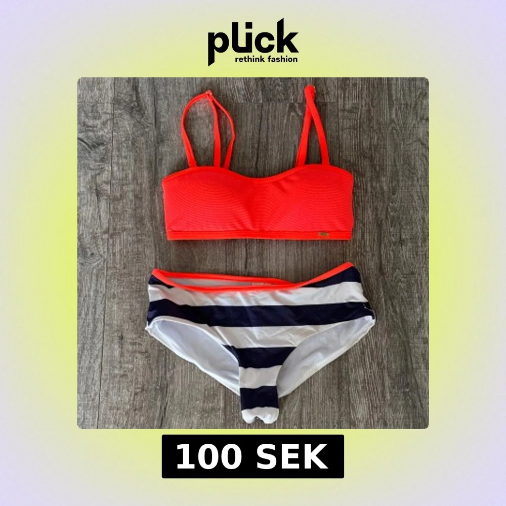 Oanvänd Snygg bikini i starka färger. Storlek XS på toppen och S i trosan