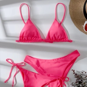 rosa bikini set i tre delar från shein, helt nytt, aldrig använt. förpackning och lappar kvar! något liten i storleken, åtminstonde överdelen. frakt tillkommer
