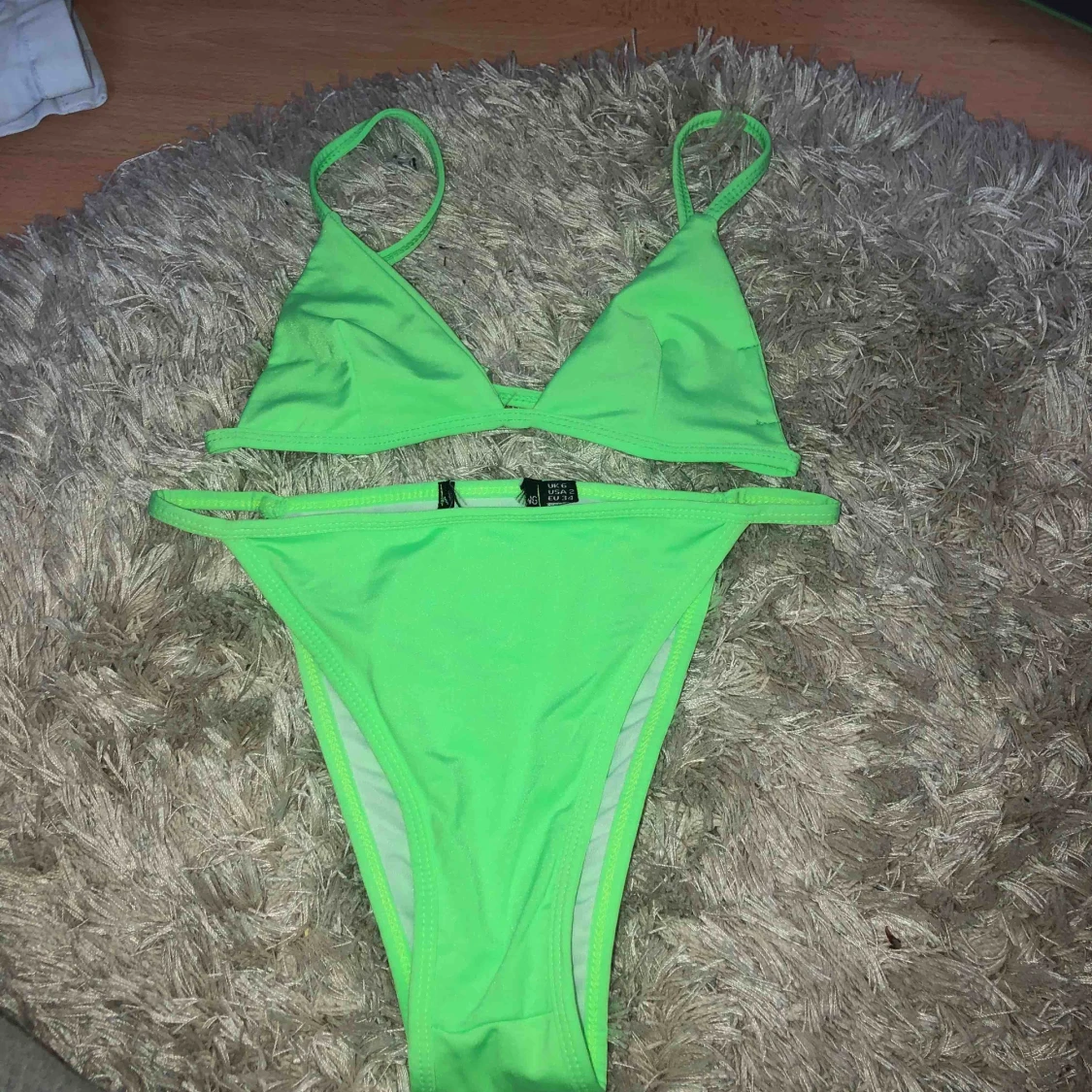 Neon-grön bikini från Prettylittlething. Jättesnygg och gör att man ser brunare ut. Storleken är 6 vilket motsvarar 34/36. Underdelen känns större, passar mer 36. Aldrig använd, endast provad. Frakt: 30kr