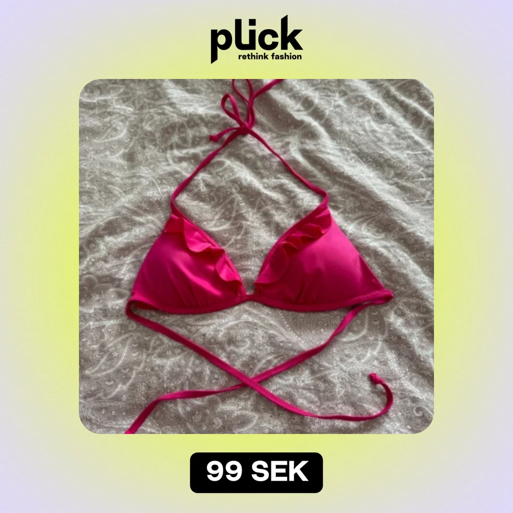 Super söt bikini topp som är köpt på Ullared, den är aldrig använd men har tagit av lappen och tvättat den. Storlek M men skulle säga en S🥰