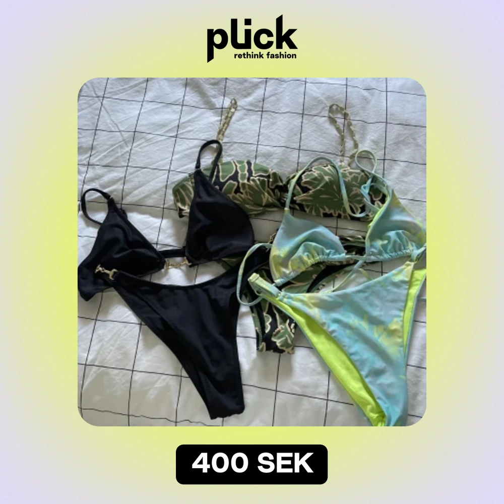 3 olika bikinisar som är knappt använda! 💚 Mörkgröna: OYSHO stl S Svarta: Etam (spanskt märke) stl S Blåa: BikBok stl S Alla för 400kr exklusive frakt
