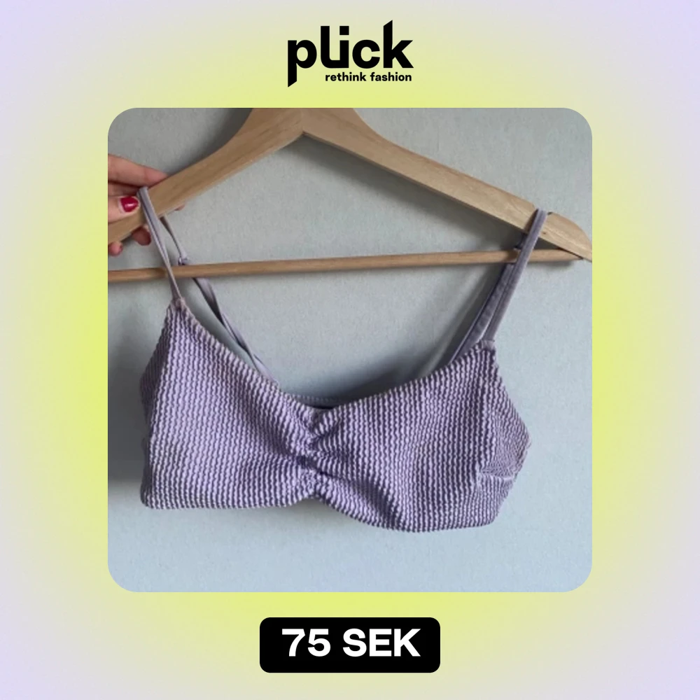 Säljer en lila bikiniöverdel som är slutsåld från hm. Den sitter som en s i storlek 34 till 36. Den är i bra skick och säljer då den ej används längre.