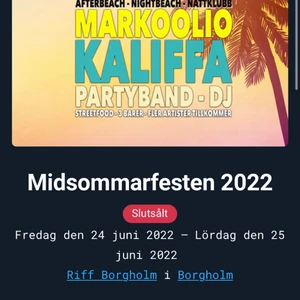 Säljer min biljett till Riff midsommarfest på Lördag, den 25e juni. Jag säljer den för 350kr!!! Pris kan diskuteras! 🎟, hör gärna av er så fort som möjligt. ☺️