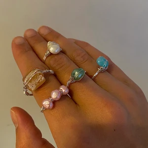 handgjorda ringar med bla sötvattenspärlor