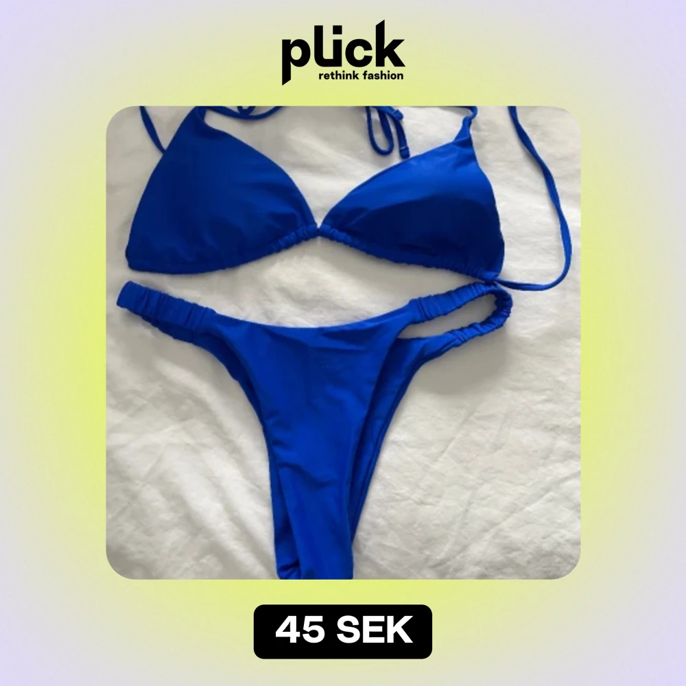 Supersnygg blå bikini med smala bikinitrosor, storlek M men passar en S, såklart aldrig använd