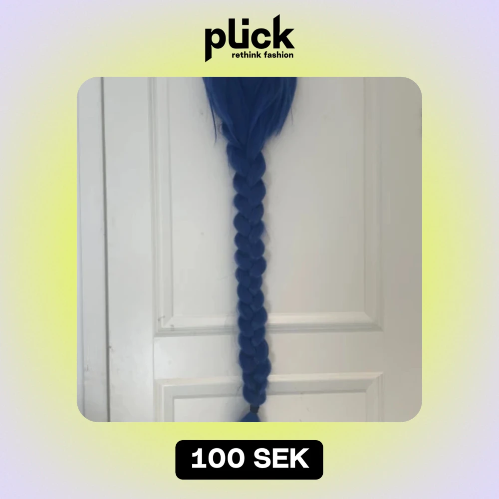 Lång blå peruk i jätte fin skick! aldrig använd! Den är jätte bra för utklädnad eller cosplay. Den går ungefär lite längre ner än rumpan.