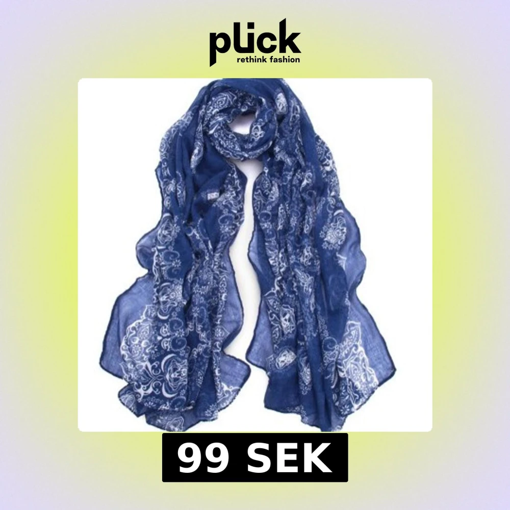 Snygg och luftig blå halsduk med ett detaljerat vitt mönster. Perfekt för att ge en stilfull touch till din outfit. Halsduken är lätt och passar bra för olika tillfällen. Finns ljus rosa och ljus grön kvar, helt ny ,