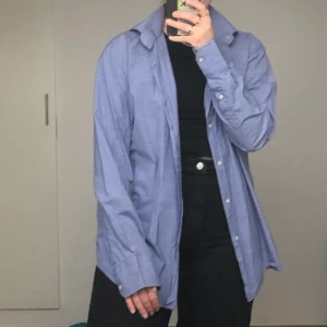 Fin blå skjorta i ett tunnare material som sitter lite oversized på mig som normalt är runt M. Är i utmärkt skick även om den är bra använd. Frakt inkluderat i priset