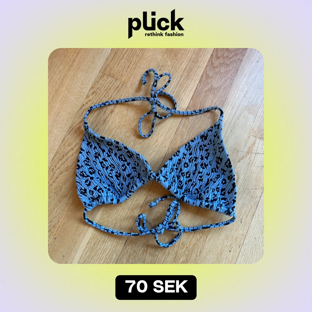 Säljer en snygg blå och svart bikiniöverdel med leopard mönster. Den har knytband i nacken och ryggen för justerbar passform. Endast använd 2 gånger & sen tvättad! 🩵 från nakd