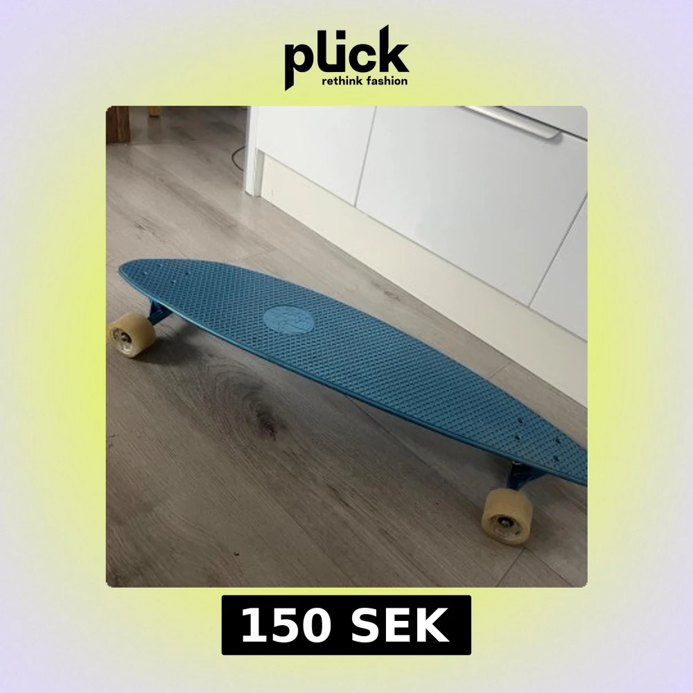 Säljer en blå skateboard/longboard med plastdeck och vita hjul. Använd några gånger, funkar fortfarande som ny.