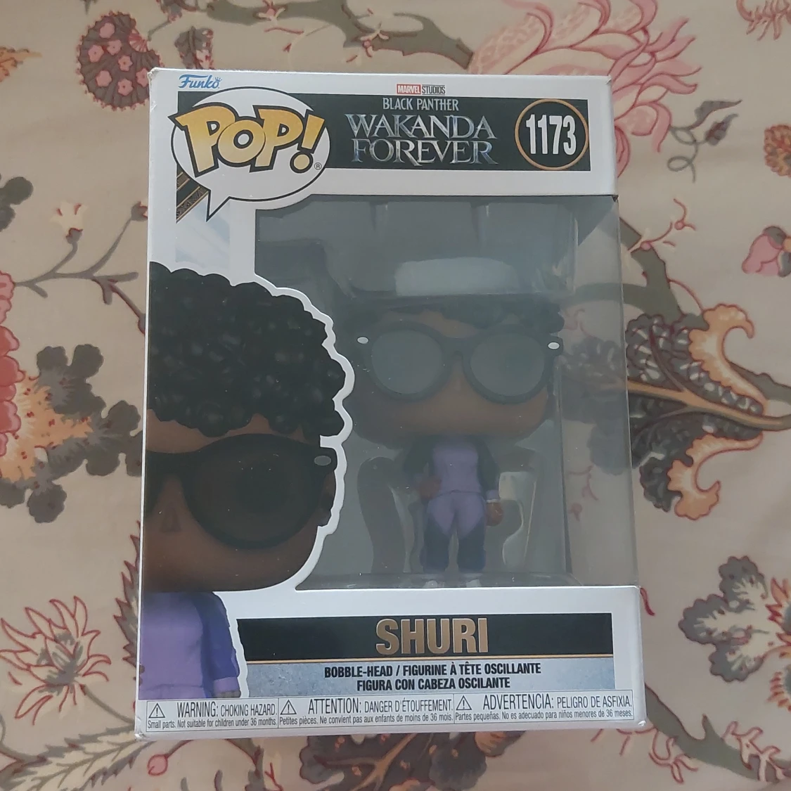 Funko Pop! figur av Shuri från Black Panther: Wakanda Forever, nr 1173. Figuren är i nyskick och levereras i originalförpackning, perfekt för samlare och Marvel-fans. Inga synliga defekter eller slitage på boxen.