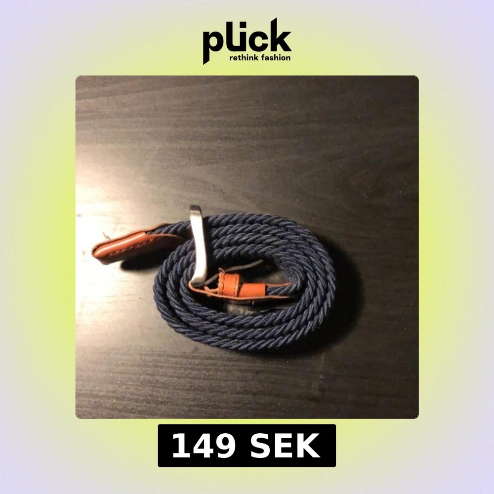 Snyggt blått flätat bälte med bruna läderdetaljer och en stilren metallspänne. Perfekt för att ge en avslappnad men ändå stilfull touch till din outfit. 600kr nypris helt clean