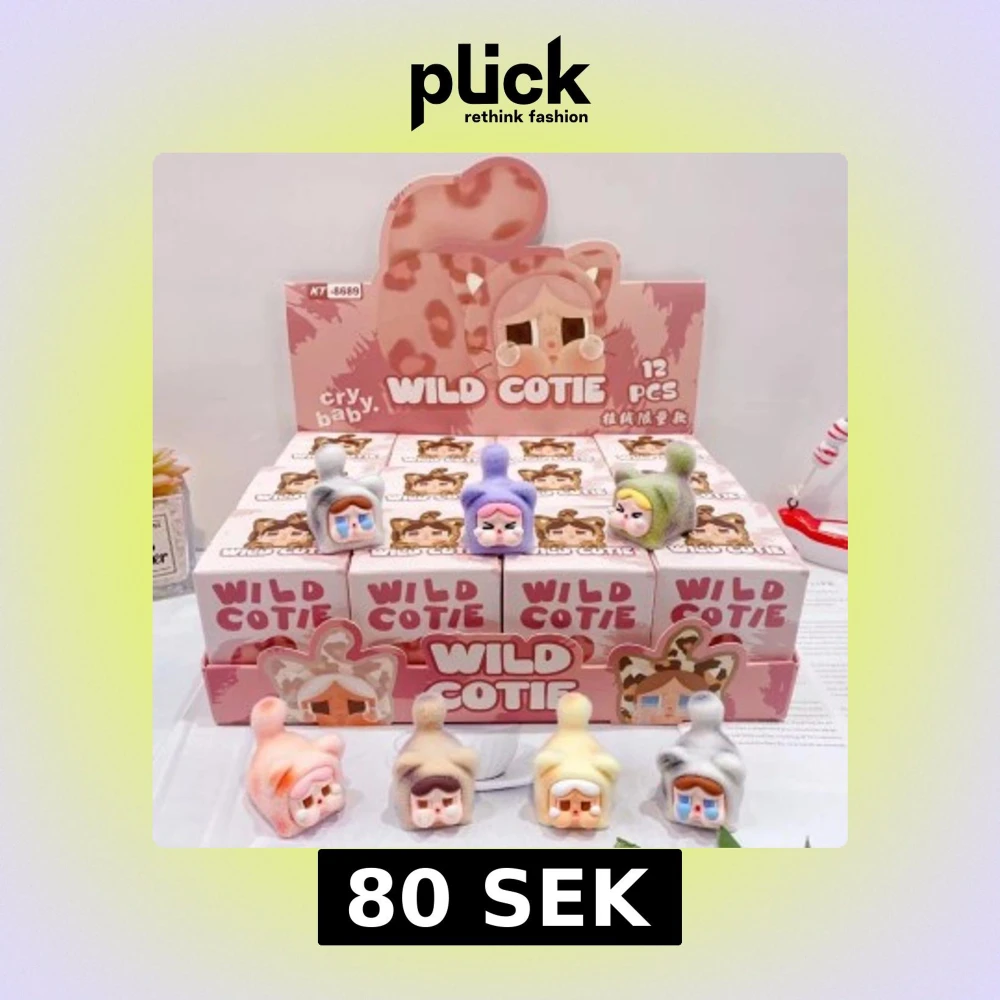 En söt samlarbox med 12 stycken 'Wild Cotie Cry Baby'-figurer i olika färger och uttryck. Perfekt för dig som gillar kawaii och unika samlarprylar! Varje figur har en mjuk, fluffig dräkt och ett charmigt ansiktsuttryck. En rolig present eller dekoration till skrivbordet. Säljs 80kr / st.
