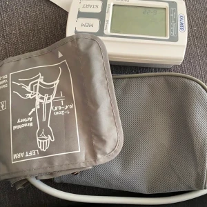 En blodtrycksmätare, den fungerar som den ska och allt man behöver följer med. Bjuder på frakten! Bud från 75:-. Take care of your health 🥰🥰