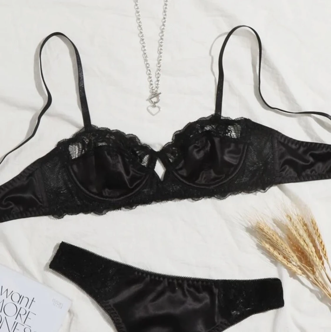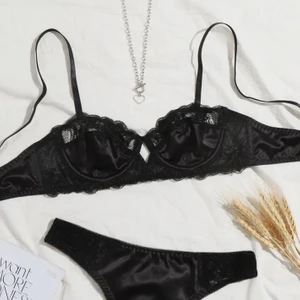 Säljer denna fina bralette i svart satin med lite spets, aldrig använd då den är för liten! 😔❤️