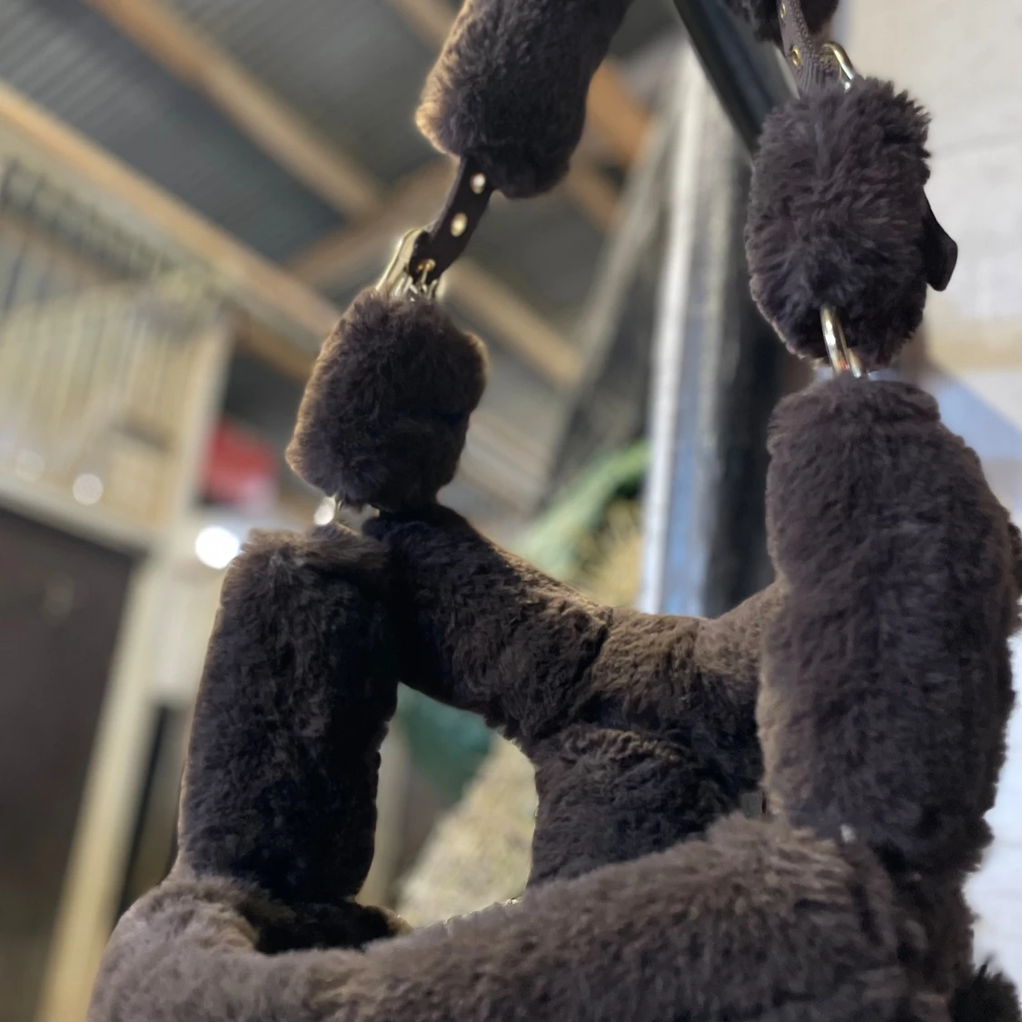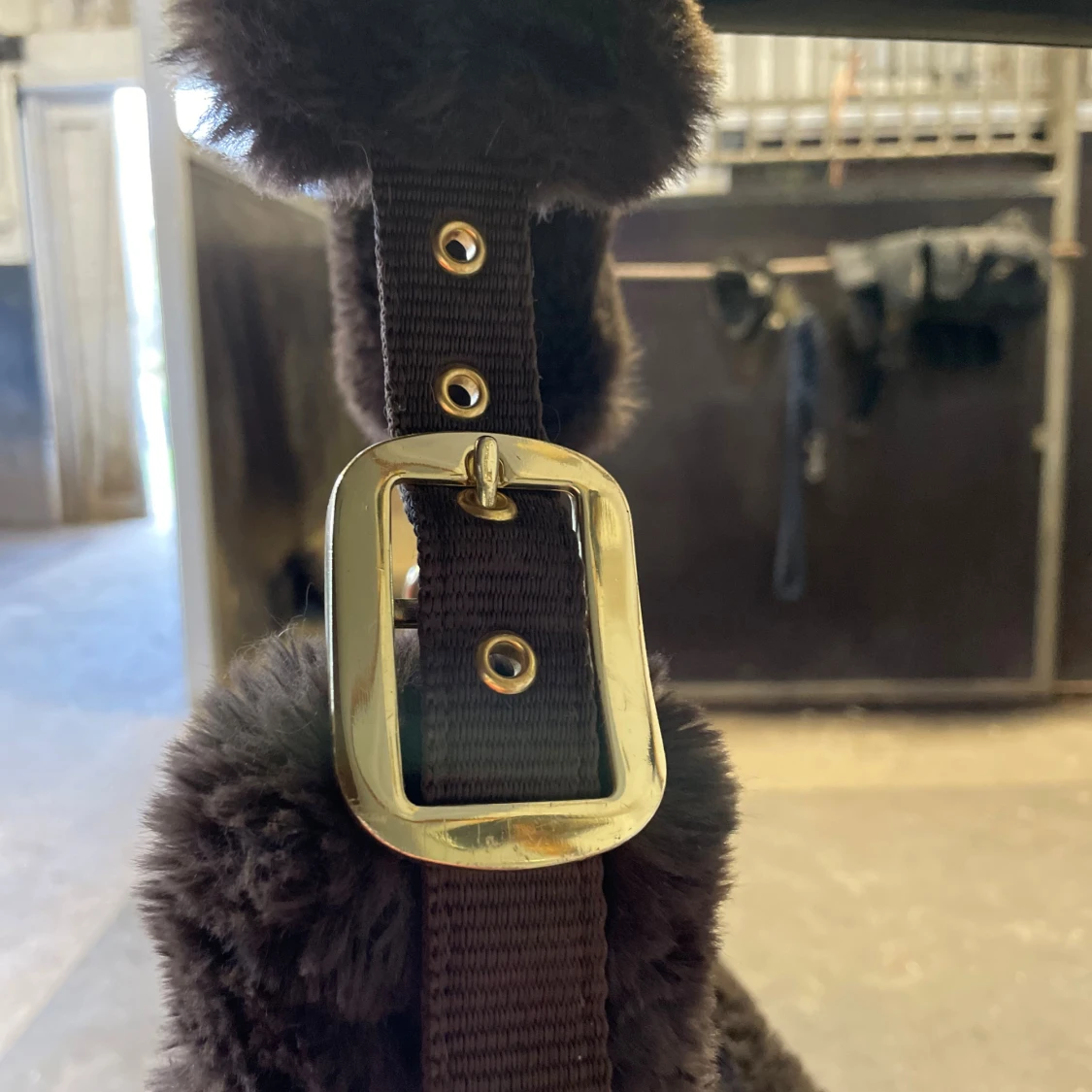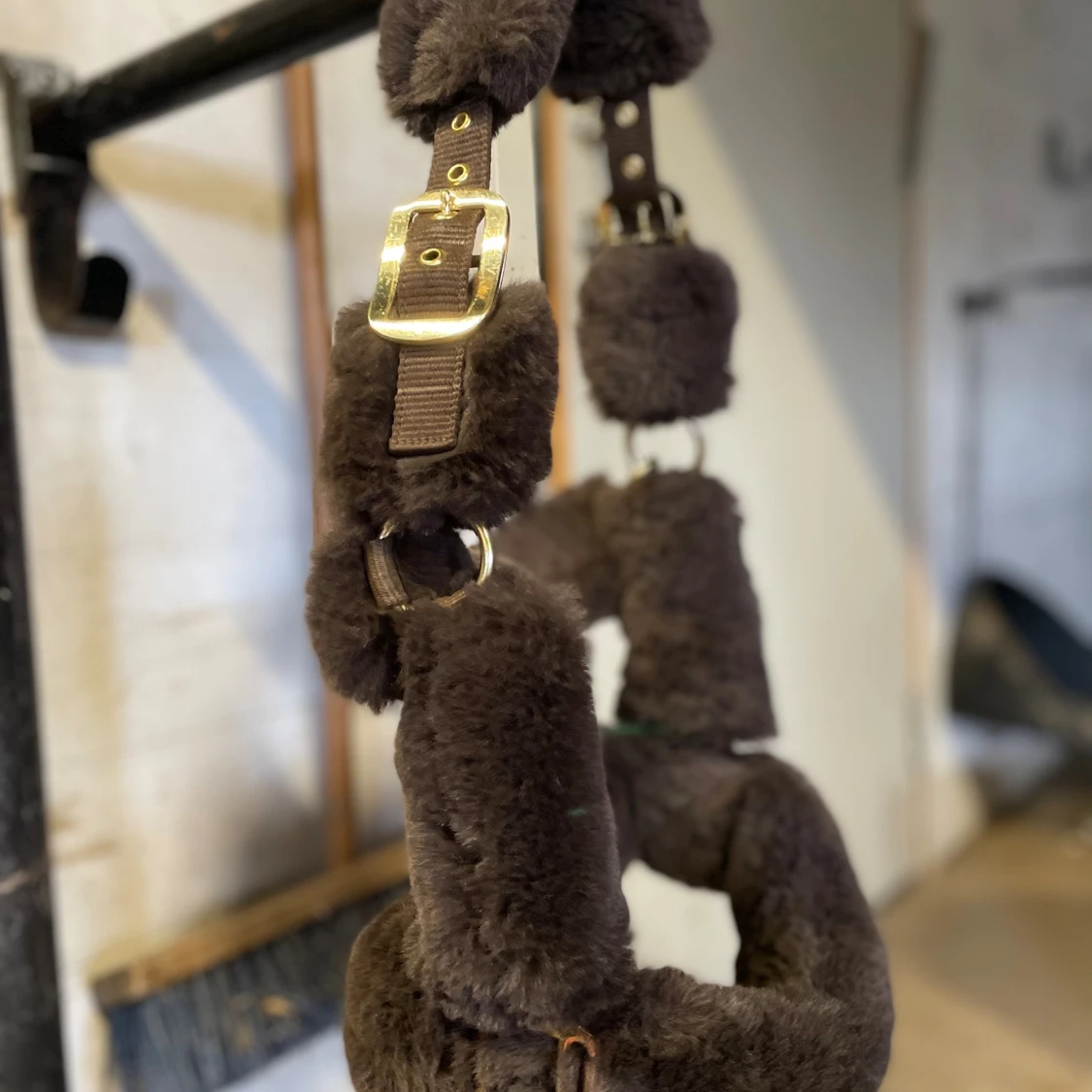 Super fin brun fluff grimma i stl: Ponny, använd cirka 5 gånger så väldigt fint skick!🌟Har passat både min B och C ponny. Gulddetaljer