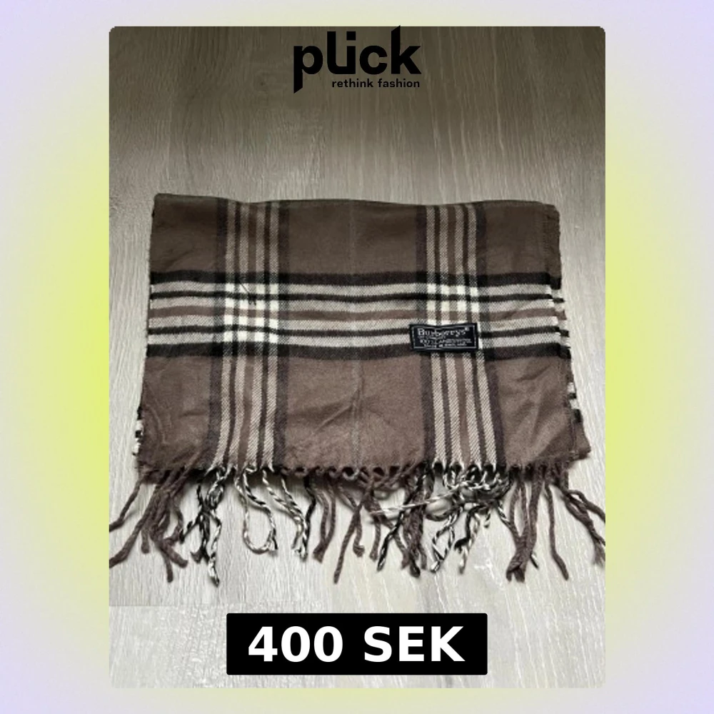 Snygg halsduk från Burberrys i klassiskt rutigt mönster med bruna, beige och svarta toner. Gjord i 100% lammull och har fransar i ändarna som ger en chill vibe. Perfekt att slänga över axlarna när det är kallt ute.
