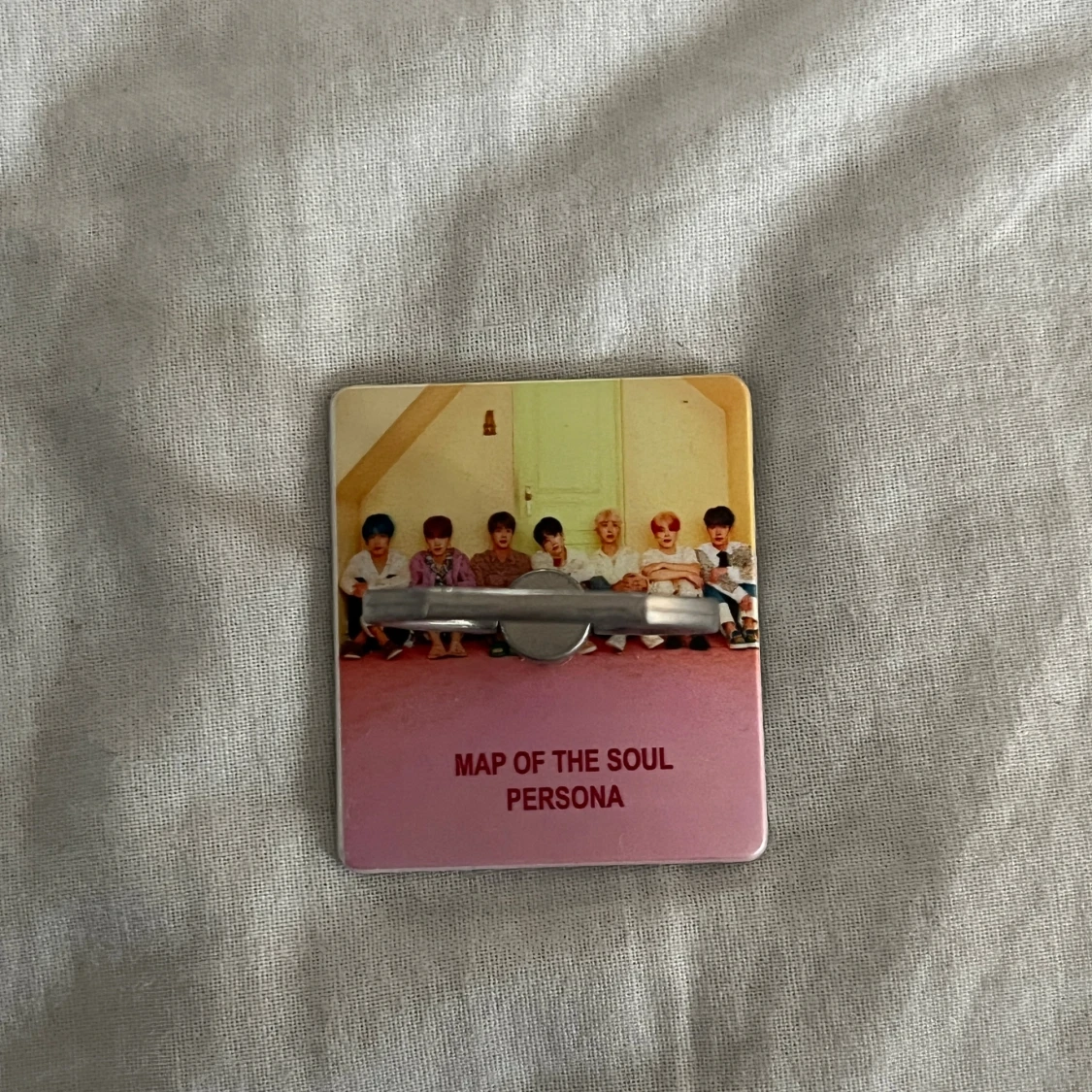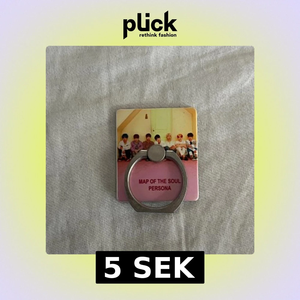 Mobilring med motiv från MAP OF THE SOUL PERSONA, perfekt för bättre grepp och stöd till din mobil. Fästes enkelt på baksidan av telefonen. Metallringen är i gott skick, mindre tecken på normalt bruk. Passar de flesta mobiltelefoner. Se min profil för mer BTS grejer!