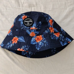 Säljer den här mörkblå blount & pool buckethat med orangea hibiscus blommor. Kontakta vid intresse ⭐ TRYCK INTE PÅ KÖP NU