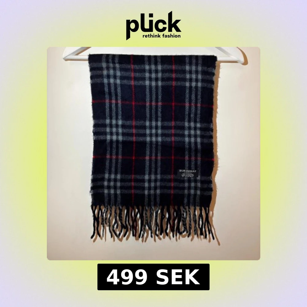 Snygg rutig halsduk från Burberry i 100% kashmir. Mörkblå bas med grå och röda rutor samt fransar i ändarna. Perfekt accessoar för att lyfta din outfit med klassisk brittisk stil.