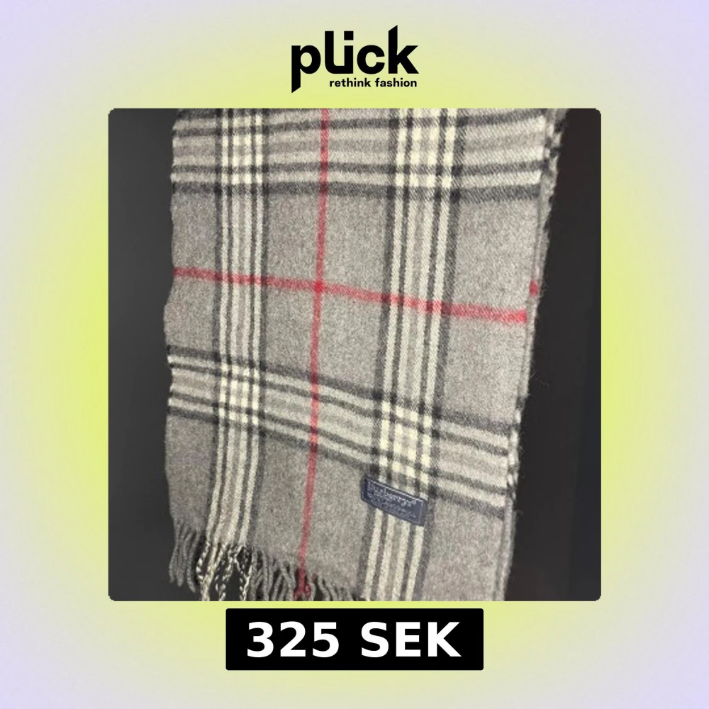 Snygg grå halsduk från Burberrys med klassiskt rutigt mönster i svart, vitt och rött. Gjord av 100% lammull och har fransar i kanterna. Perfekt för att ge din outfit en stilren touch under kyliga dagar. Taggen lite sönder där av nedsatt pris!