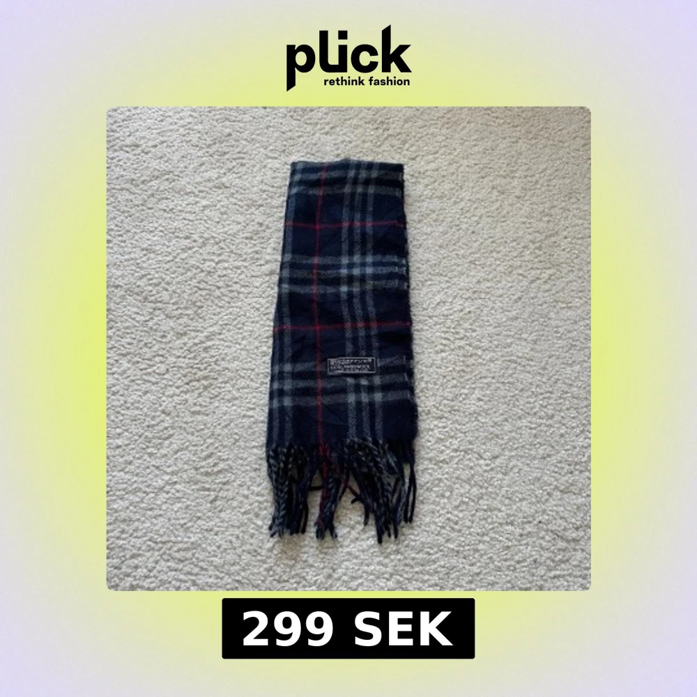 Säljer en klassisk rutig halsduk från Burberry i mörkblått med inslag av rött och grått. Tillverkad av 100% lammull, vilket gör den både mjuk och varm. Perfekt accessoar för kyliga dagar. Fransen ger en extra touch av stil.