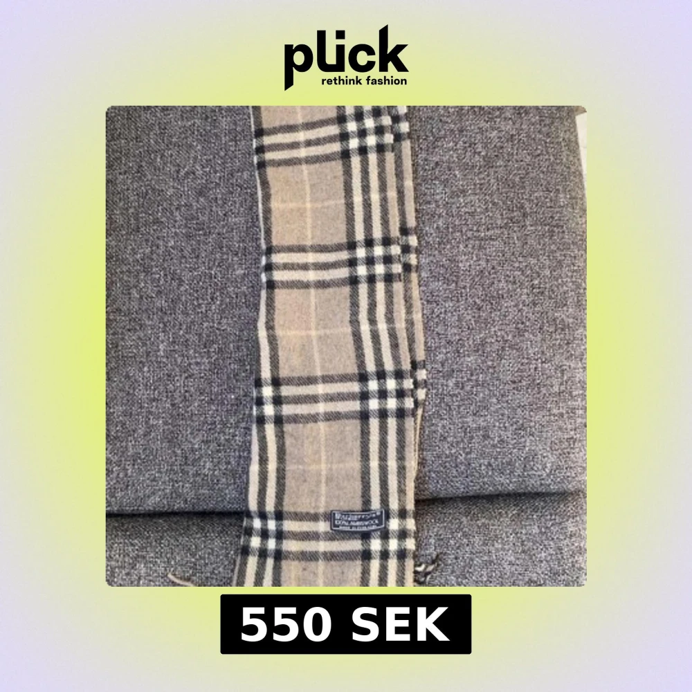 Säljer en klassisk beige rutig halsduk från Burberry. Den har ett tidlöst rutmönster i svart och vitt, Märkesetiketten är synlig på ena sidan. Perfekt accessoar för både vardag och speciella tillfällen.