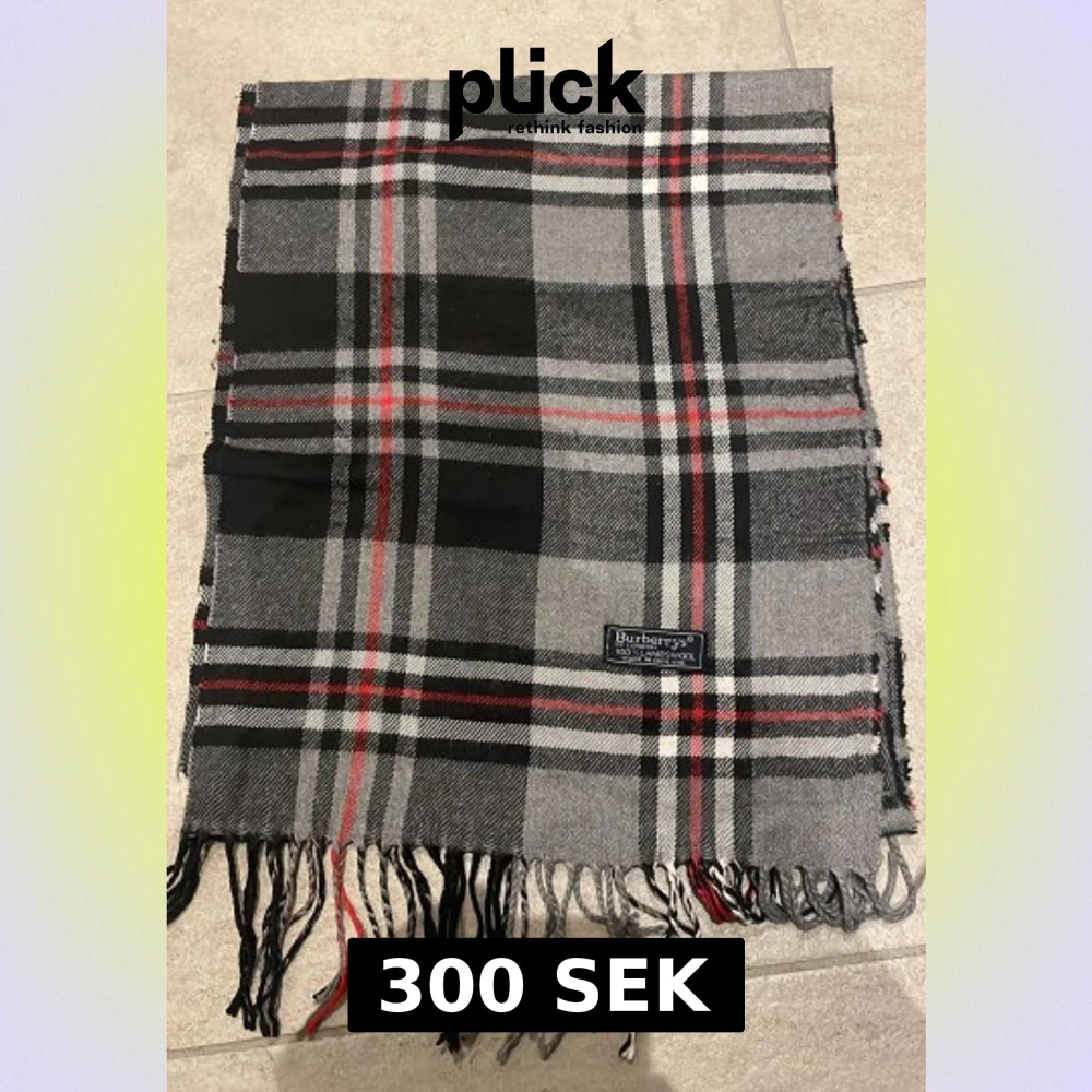 Klassisk rutig halsduk från Burberrys i 100% lammull. Färgkombinationen är svart, grå, vit och röd med fransar i ändarna. Perfekt accessoar för att lyfta din outfit med en tidlös brittisk känsla.