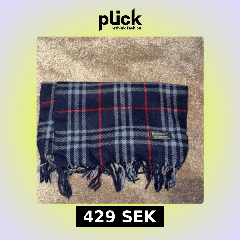 Snygg rutig halsduk från Burberry i mörkblått med röda och grå ränder. Tillverkad i mjukt material med fransar i ändarna. Perfekt för att hålla sig varm och stilren under kyliga dagar.