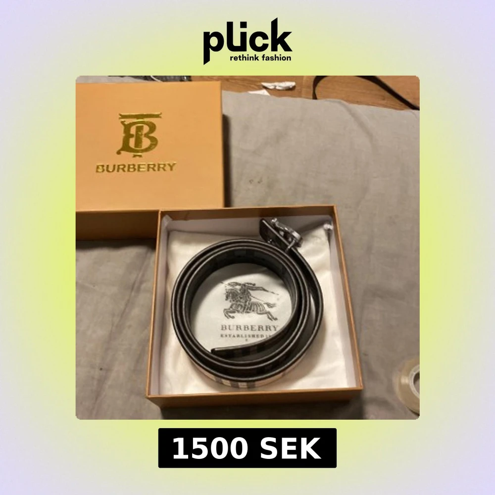 Säljer ett Burberry bälte med det ikoniska beigea rutmönstret och en stor metallspänne med Burberry-logga. Bältet har svarta kanter och insidan är svart. Kommer i originalask.