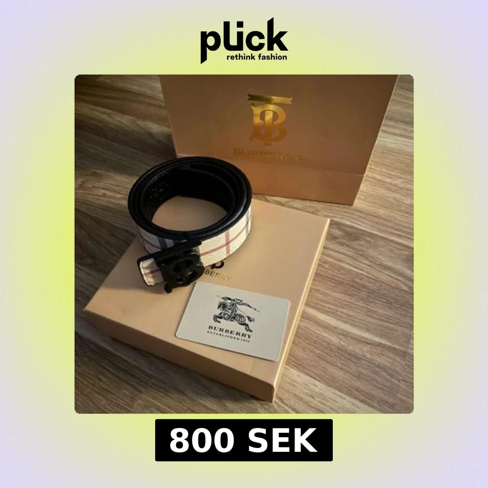 Snyggt Burberry-bälte med klassiskt rutigt mönster i svart och beige, samt ett stort svart B-spänne framtill. Bältet är gjort i skinn och har exklusiva detaljer med Burberrys logga. Perfekt accessoar för att lyfta din outfit.