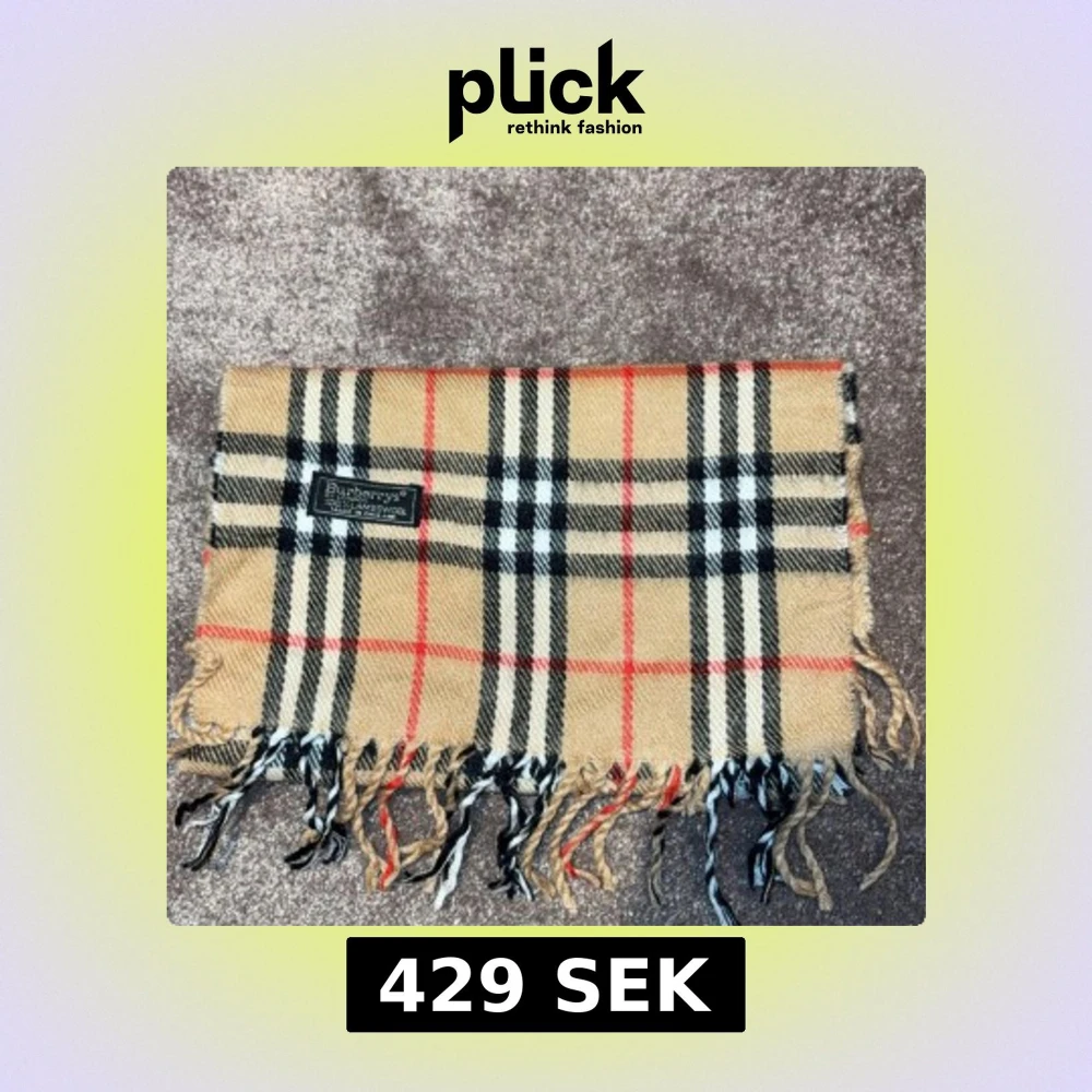 Säljer en klassisk rutig halsduk från Burberry i beige, svart och röd. Den har fransar i ändarna och är perfekt för att hålla dig varm och stilren under kyliga dagar.
