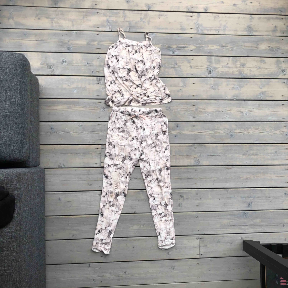 Linne och byxor från PoMP de LUX. Mjukt och bekvämt tyg med grå/beige blommor på. Perfekt mysplagg!