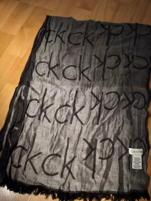 Snygg halsduk från Calvin Klein i svart och grått med stora CK-loggor över hela tyget. Halsduken är rektangulär och har fransar i kanterna. Perfekt accessoar för att lyfta din outfit med en stilren och modern touch.