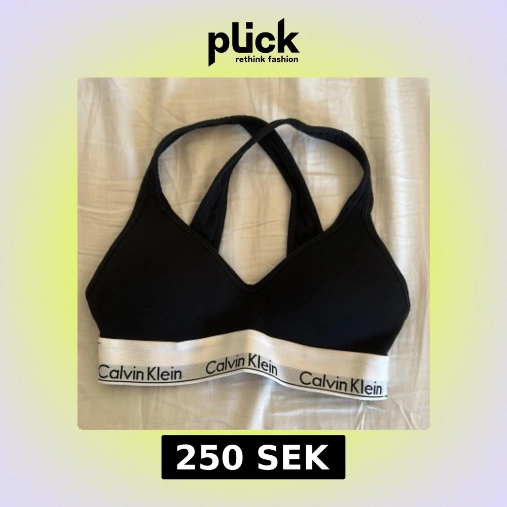 Snygg svart sporttopp från Calvin Klein med korsade axelband och elastiskt band med logotyp. Perfekt för träning eller en avslappnad look. Är helt ny och är köpt för 400kr