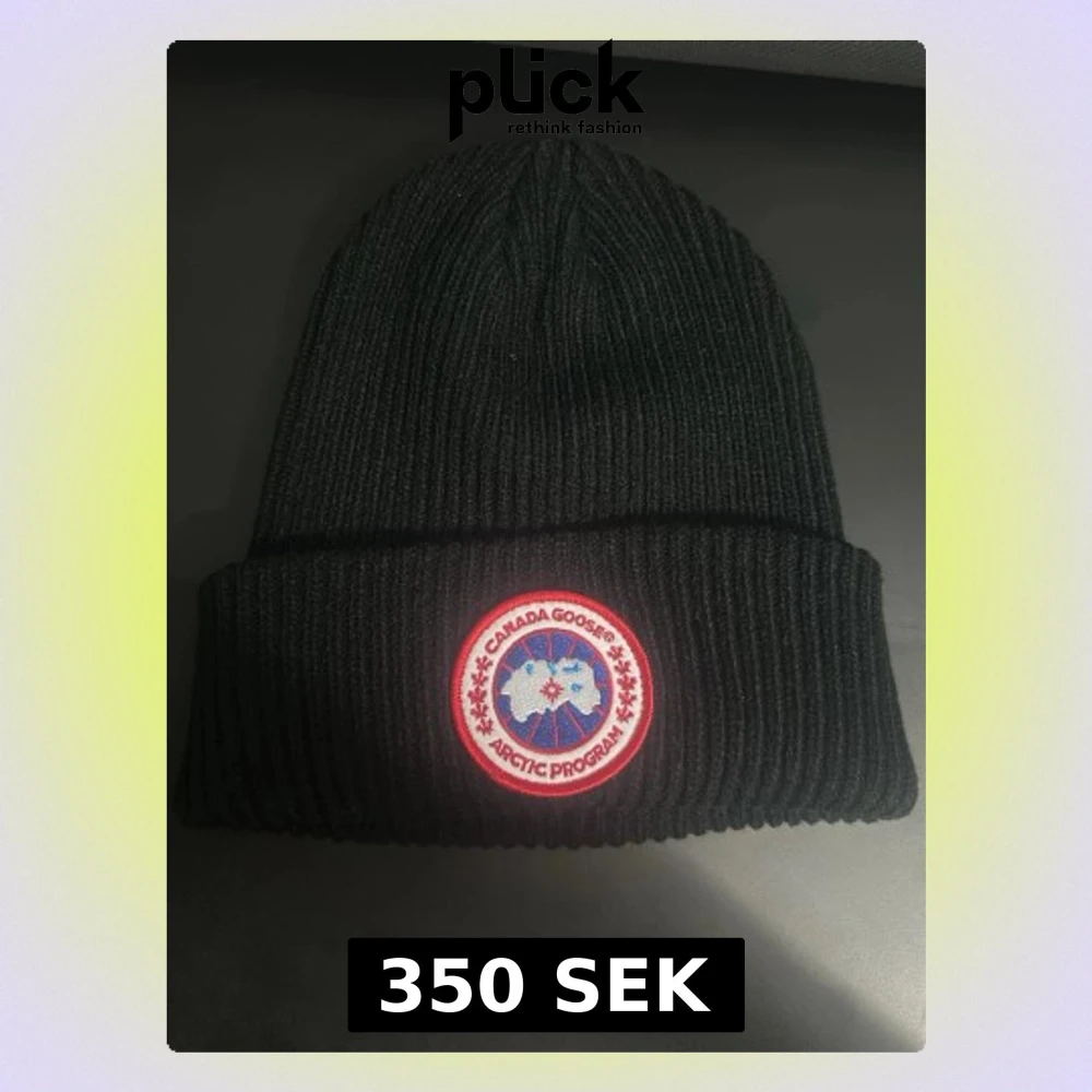 Svart ribbstickad mössa från Canada Goose med klassisk rund logotyp-patch framtill. Mössan är enkel och stilren, perfekt för kalla dagar. Materialet är mjukt och värmande, och designen är tidlös med uppvikt kant.