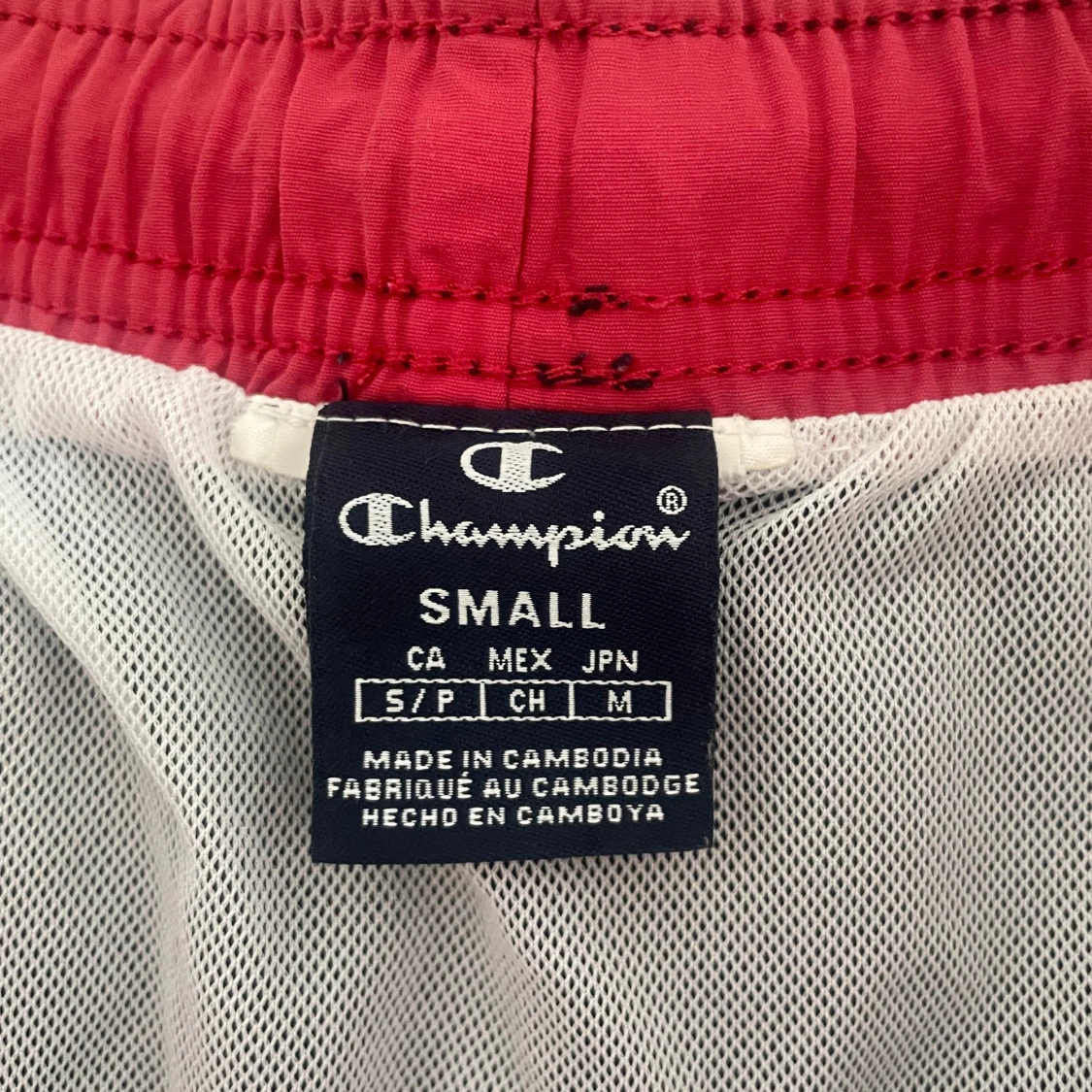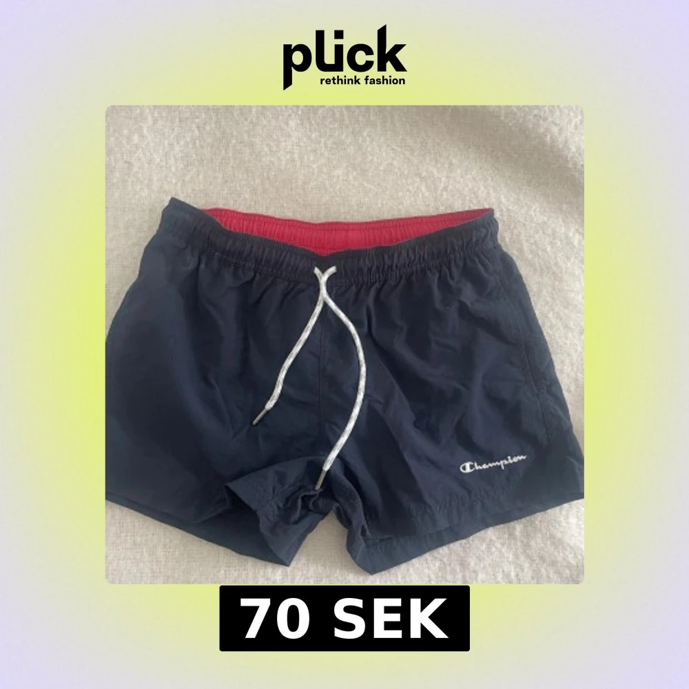 Snygga marinblå badshorts från Champion med vit snörning i midjan och röd insida. Klassisk Champion-logga broderad på benet💖💖
