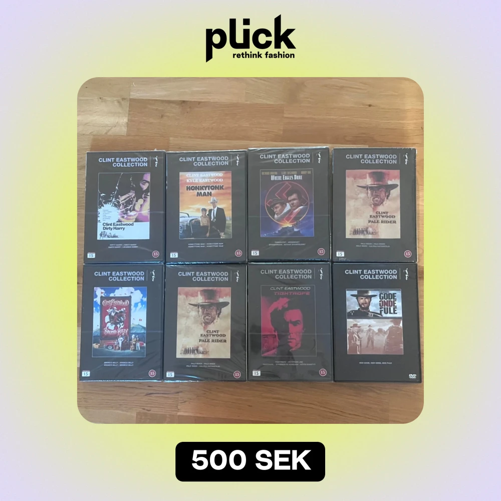 Säljer en Clint Eastwood Collection DVD-box med flera klassiska filmer. Boxen innehåller filmer som 'Dirty Harry', 'The Gauntlet', och 'Pale Rider'. Perfekt för filmälskare som vill ha en samling av Eastwoods ikoniska verk. Boxen är i bra skick och alla skivor fungerar felfritt. Perfekt för en filmkväll med vänner eller familj! Vi kan diskutera pris