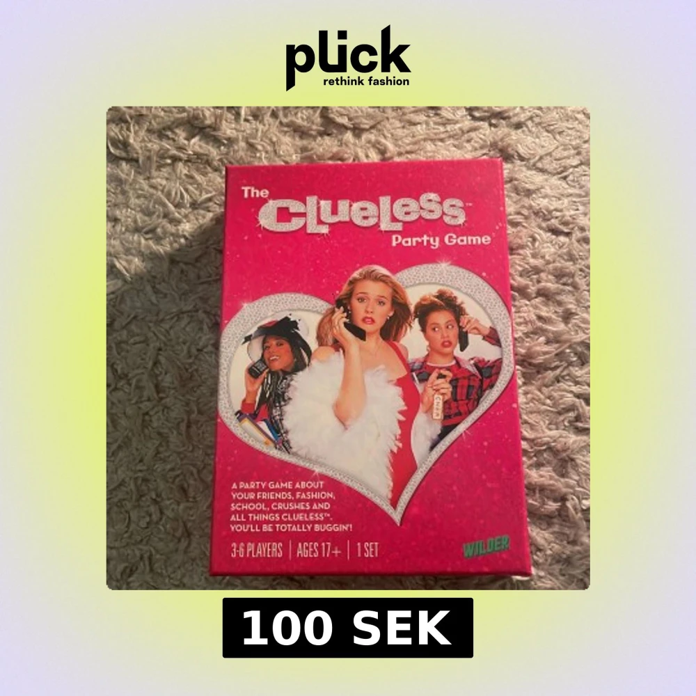 Clueless Party Game är ett sällskapsspel inspirerat av filmen Clueless. Spelet innehåller spelkort, snurrhjul, anteckningsblock, fluffig penna och debattbricka. Perfekt för 3-6 spelare från 17 år. Temat kretsar kring vänner, mode, skola och minnesvärda Clueless-ögonblick.
