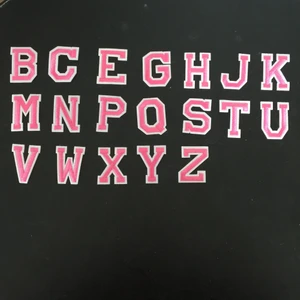 Iron on bokstäver (patches) i helt nytt skick!! En bruksanvisning medföljer och de är superenkla att bara stryka på t shirts eller liknande. Färgen är rosa med en vit kant och de visas i bild 1 finns att välja mellan🙃 5x 3,5cm mått