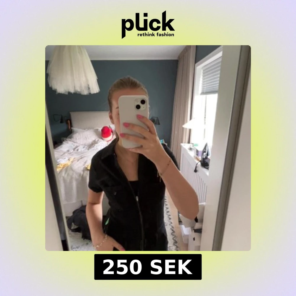 Säljer en svart jumpsuit från Bershka i jeans material, använd en gång så den är som ny🥰